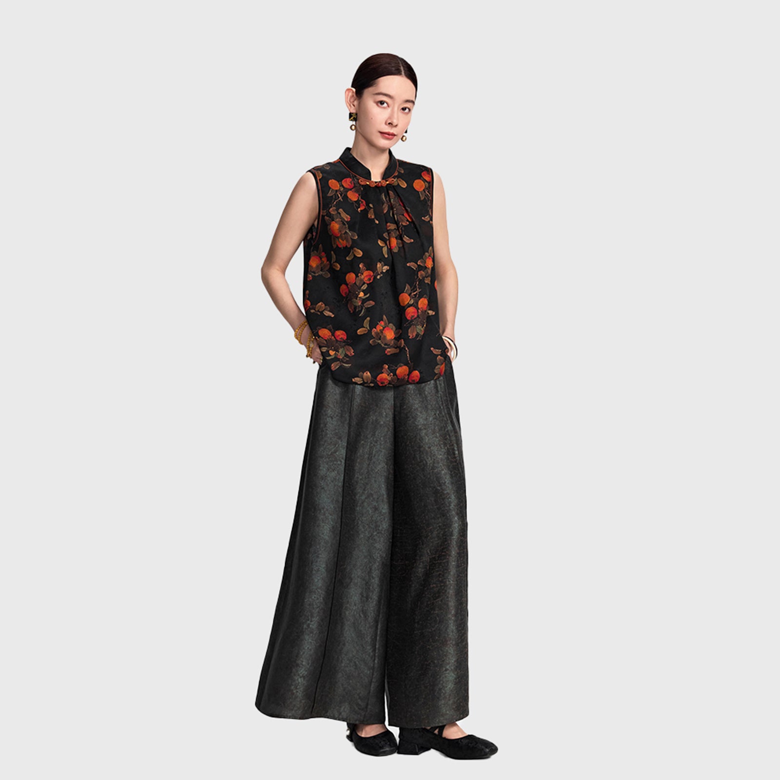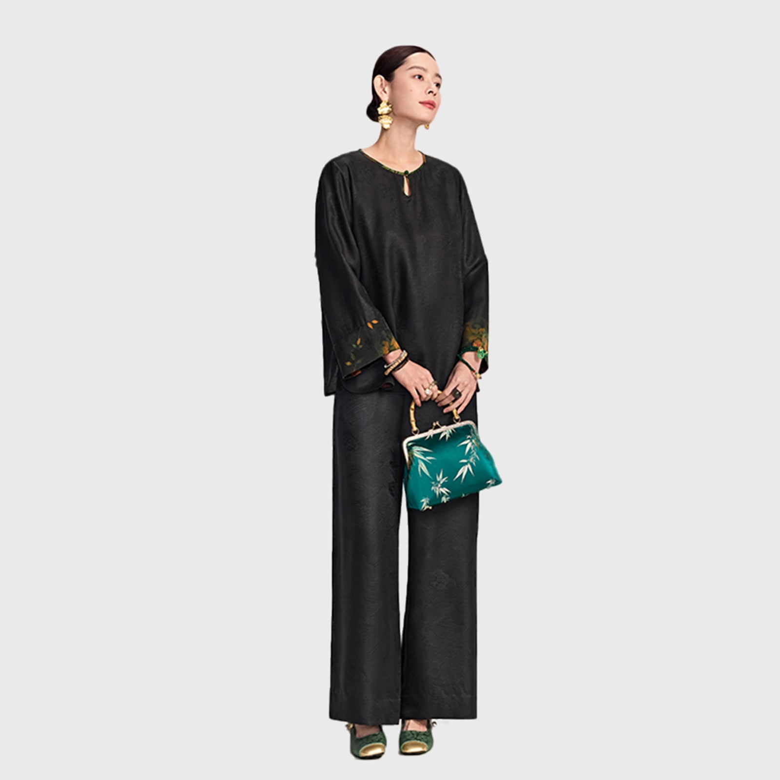 Xiangyunsha Minimalist Chinese Pants l Hidden PocketsMinimalist | Effortless Elegance for Any Occasion GuangdongBlack Pearl Gambiered Guangdong Gauze xiangyunsha
