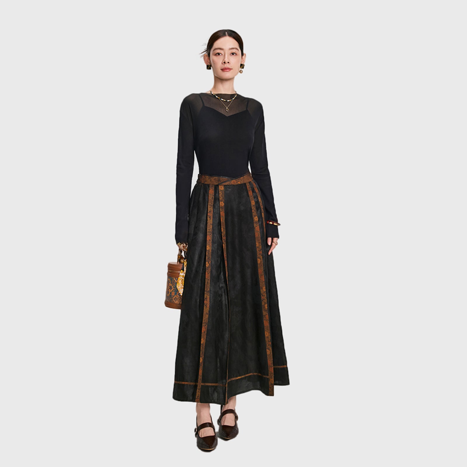 Xiangyunsha Chinese Skirt lSerenity Premium | dignifiedand silky lGuangdong Black Pearl Gambiered GuangdongGauze xiangyunsha Soft Gold