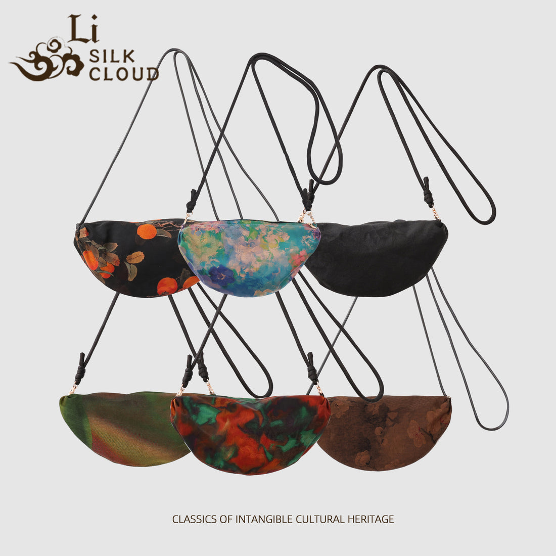 Crossbody Bag - Chinese Style Elements, Classic Oriental Shoulder Bag Guangdong Black Pearl Gambiered Guangdong Gauze xiangyunsha