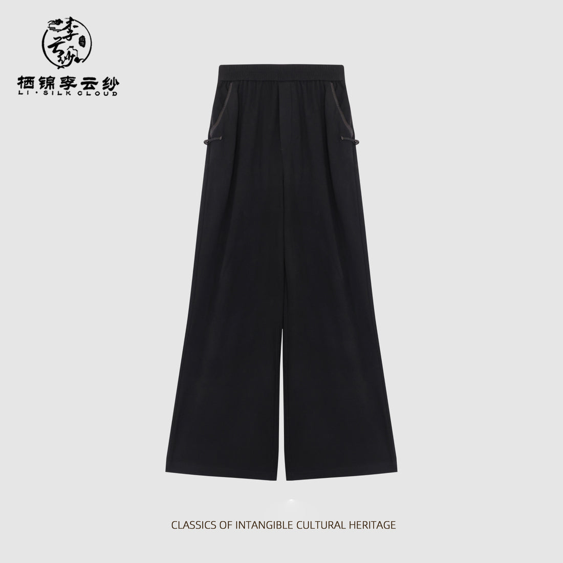 Black classic trousers Xiangyunsha fabric slightly drooping Guangdong Black Pearl Gambiered Guangdong Gauze xiangyunsha