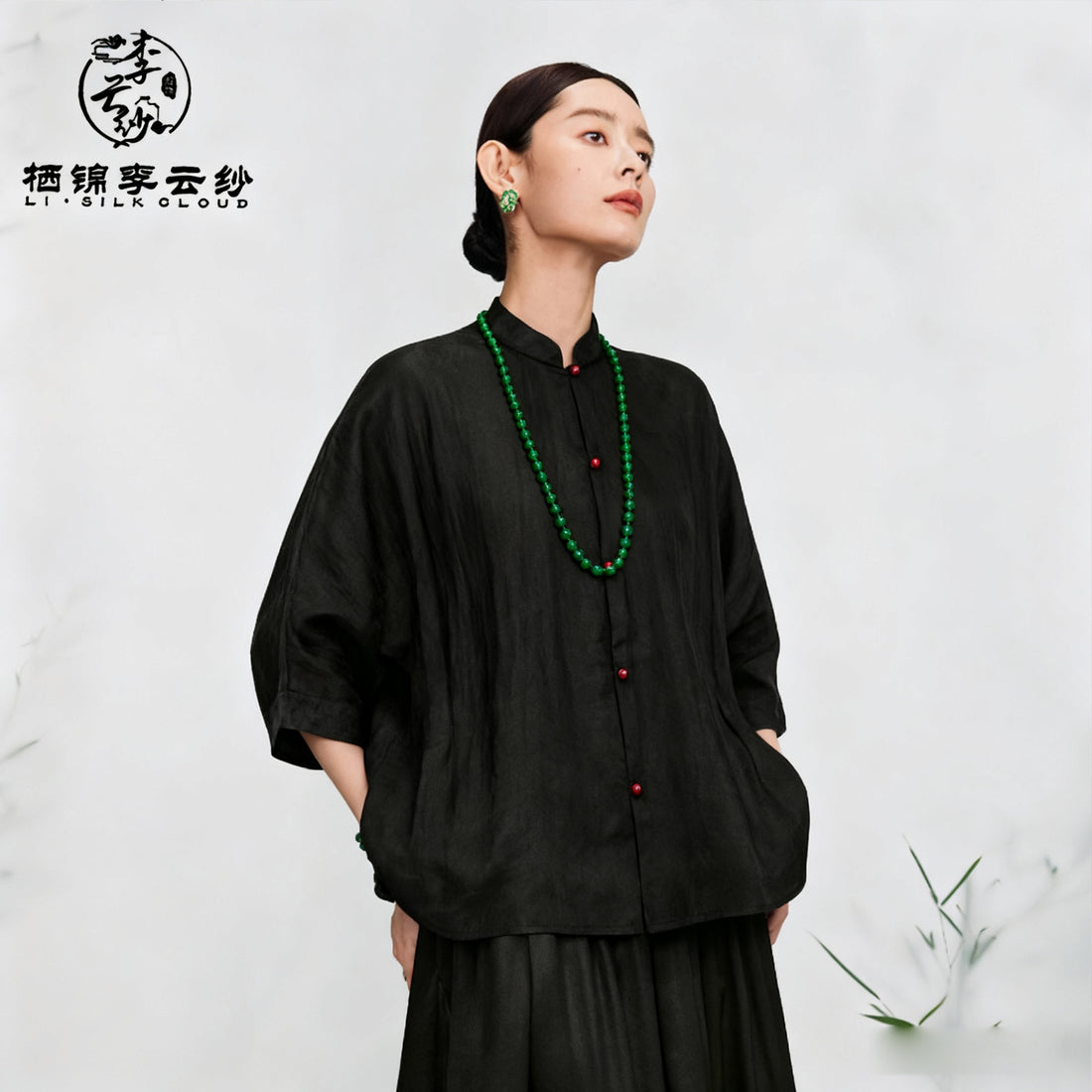 [Ink Jade]Chinese-style Top-Sculpted Fit Gambiered Silk Guangdong Black Pearl Gambiered Guangdong Gauze xiangyunsha