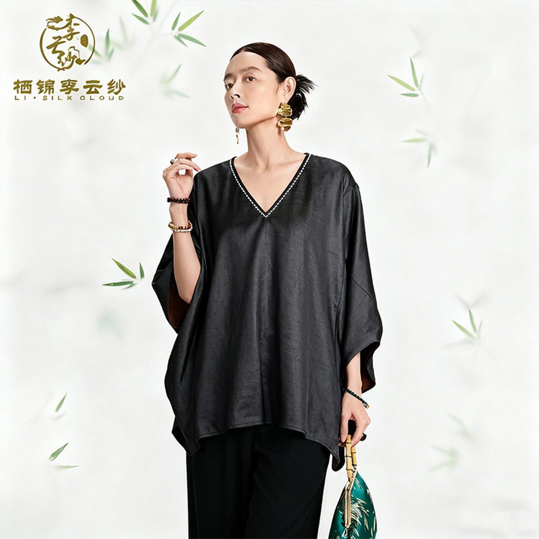 Lazy Style Casual Top |Three-dimensional cut for a slimming effect | Silk fabric for breathability and comfort | Guangdong Black Pearl Gambiered Guangdong Gauze xiangyunsha