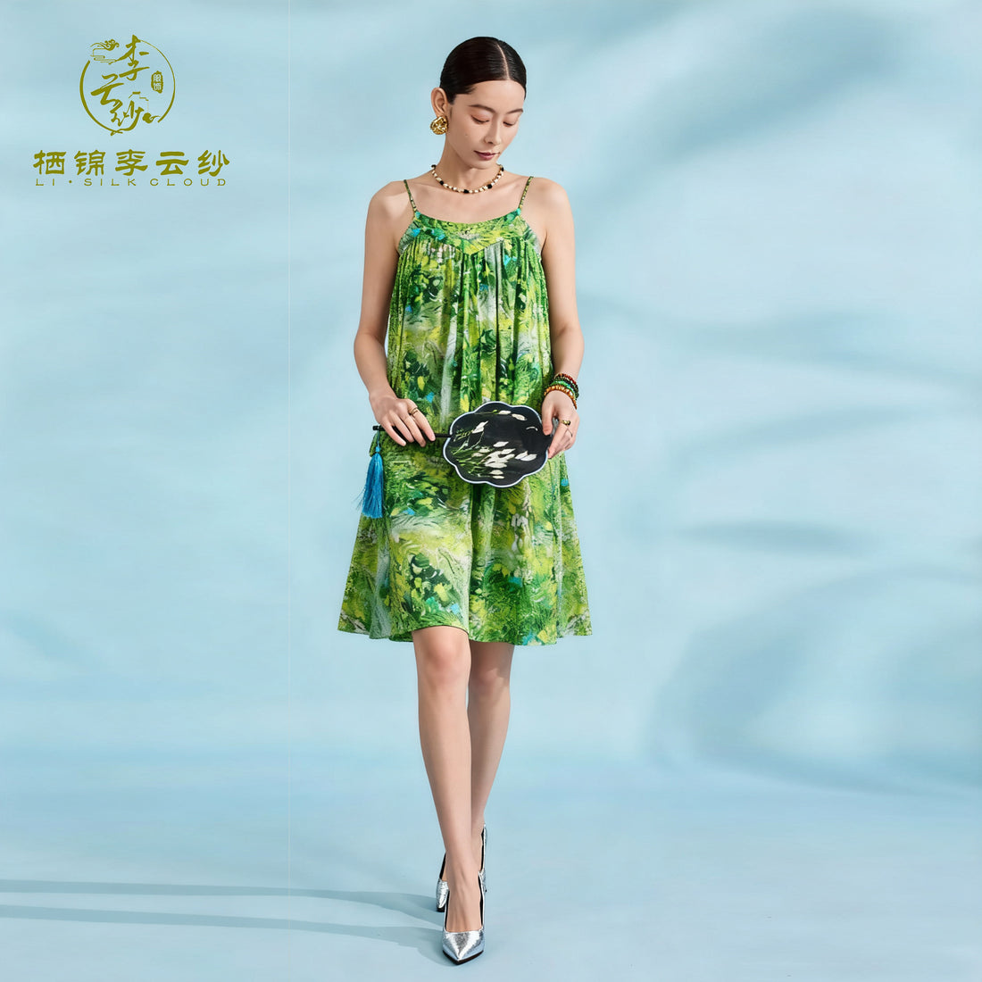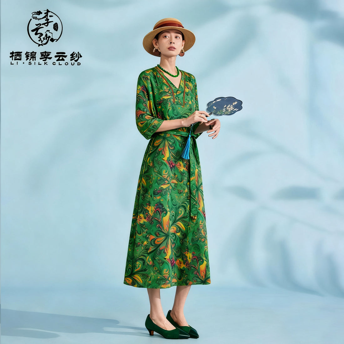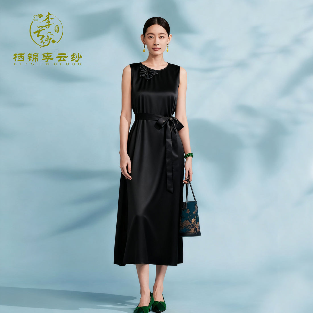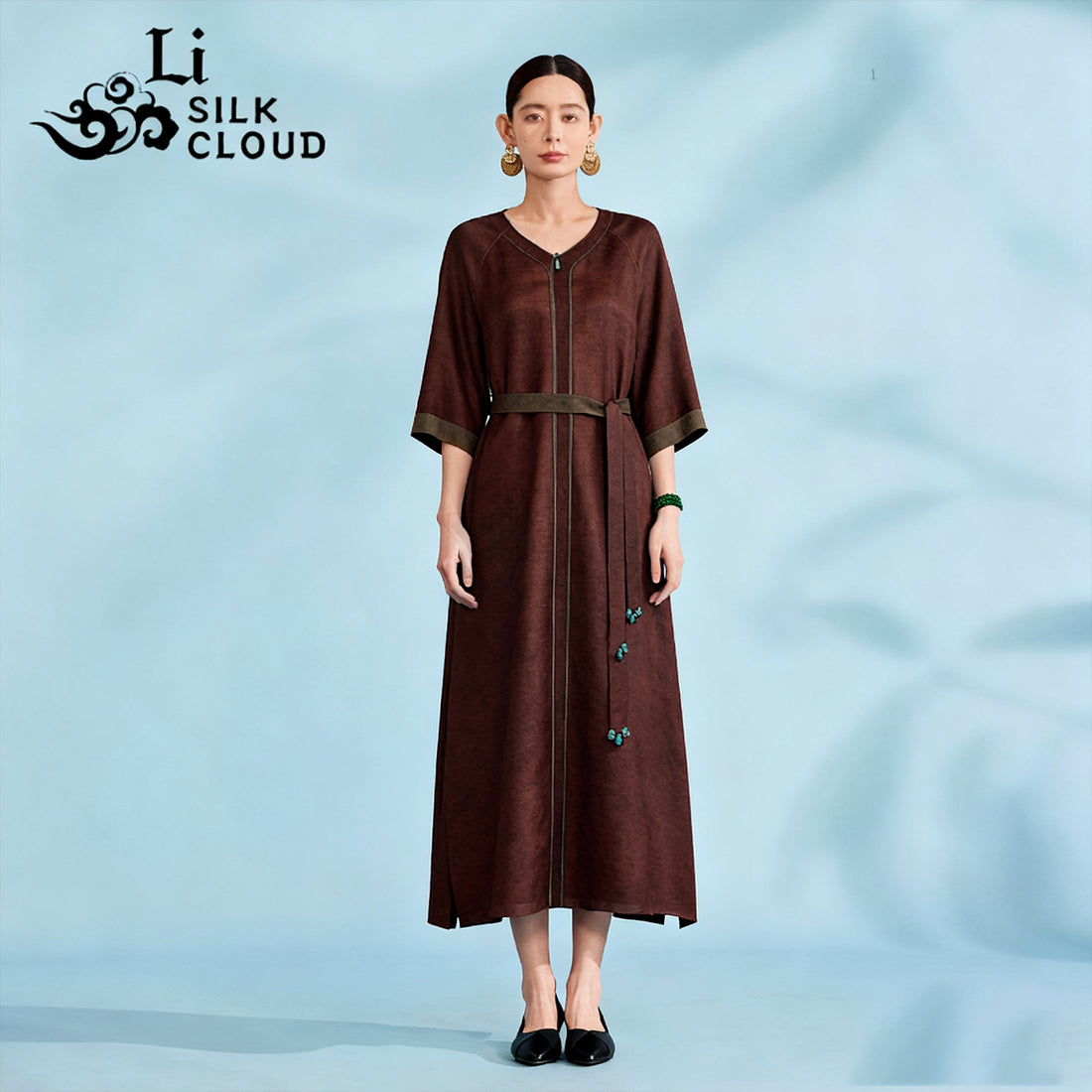 Chinese-style Xiangyunsha Dress · Removable waistband Cloud-like breathability Guangdong Black Pearl Gambiered Guangdong Gauze xiangyunsha