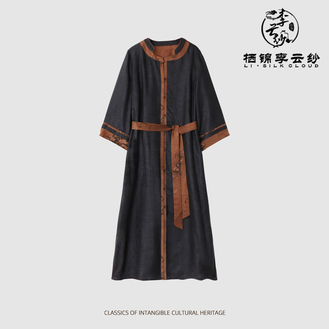 Intangible cultural heritage Xiangyunsha Elegant dress ·Brown and black contrasting colors · classic widewaistband Guangdong Black Pearl Gambiered GuangdongGauze xiangyunsha