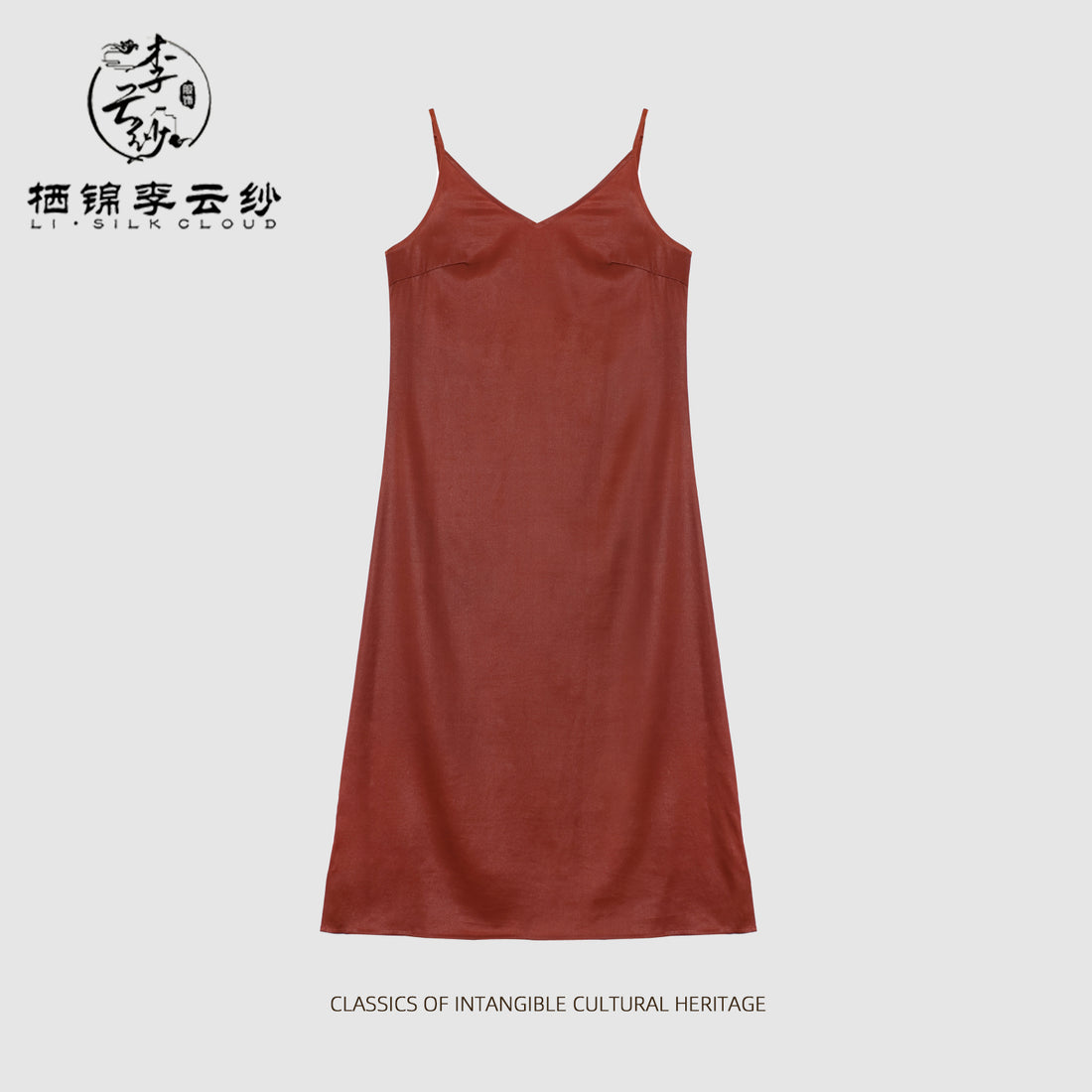 Xiangyunsha Retro Dress · Exquisite openwork side slit · Cooling breathable Guangdong Black Pearl GambieredGuangdong Gauze xiangyunsha