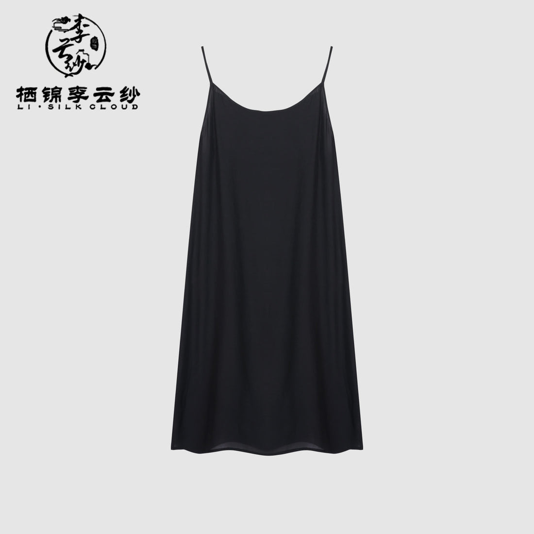 Spaghetti Strap Dress - Jet-Black Shiny Finish, Skin-Friendly Silk Guangdong Black Pearl Gambiered Guangdong Gauze xiangyunsha