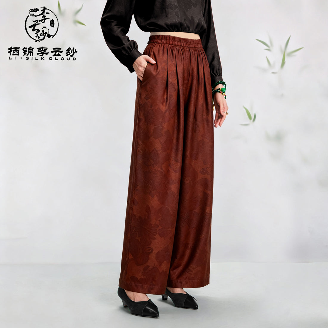 Guangdong Black Pearl Gambiered Guangdong Gauze xiangyunsha Pants, Natural Tuberose Dye, High-Waisted for Longer Legs, Free Switch Between Work & Leisure Scenes