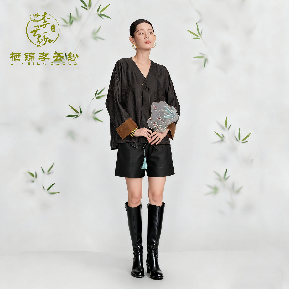Guangdong Black Pearl Gambiered Guangdong Gauze xiangyunsha Shorts, Silk Blend, Lengthens Legs & Hides Hips, Neat Look with Long-Sleeve Tops in Early Autumn