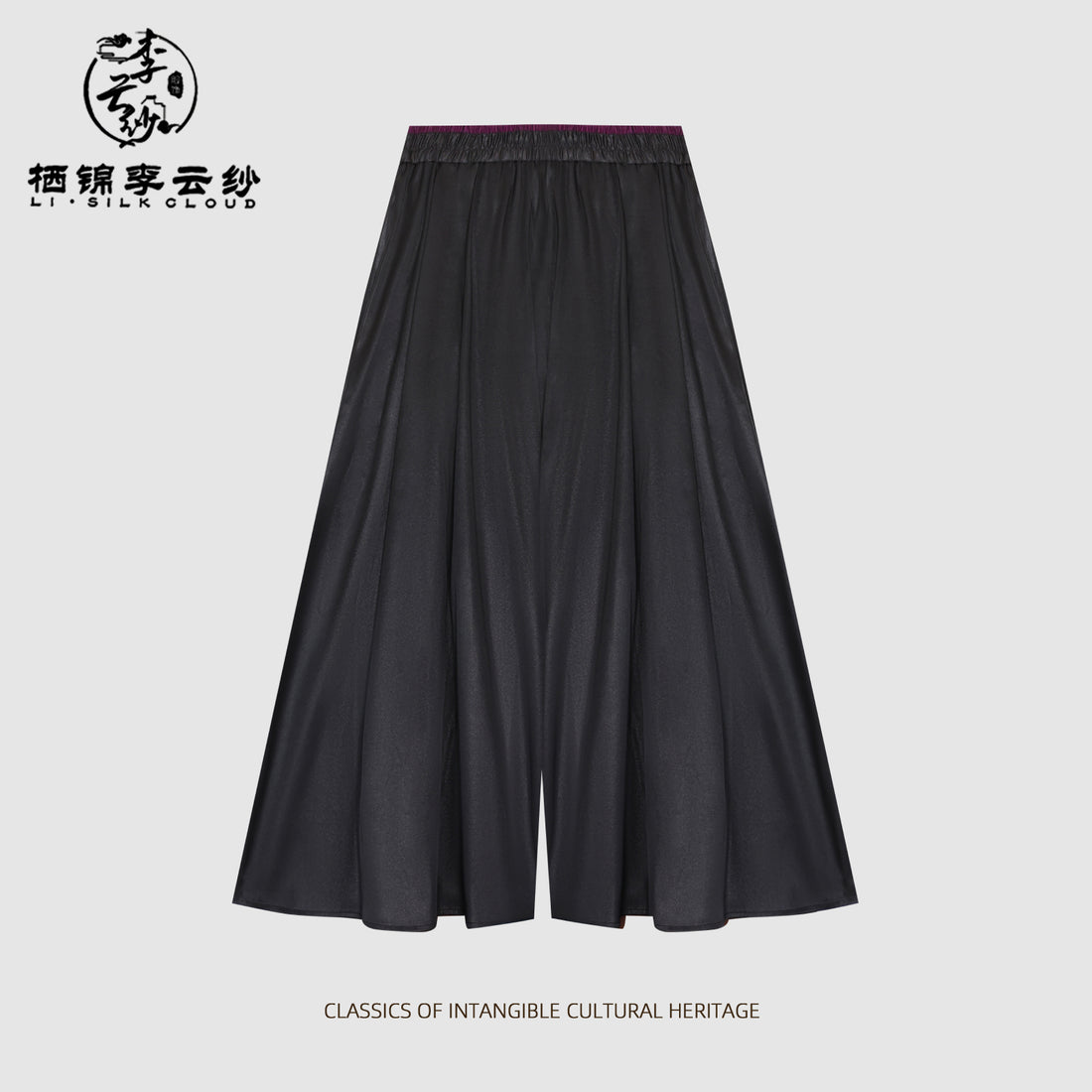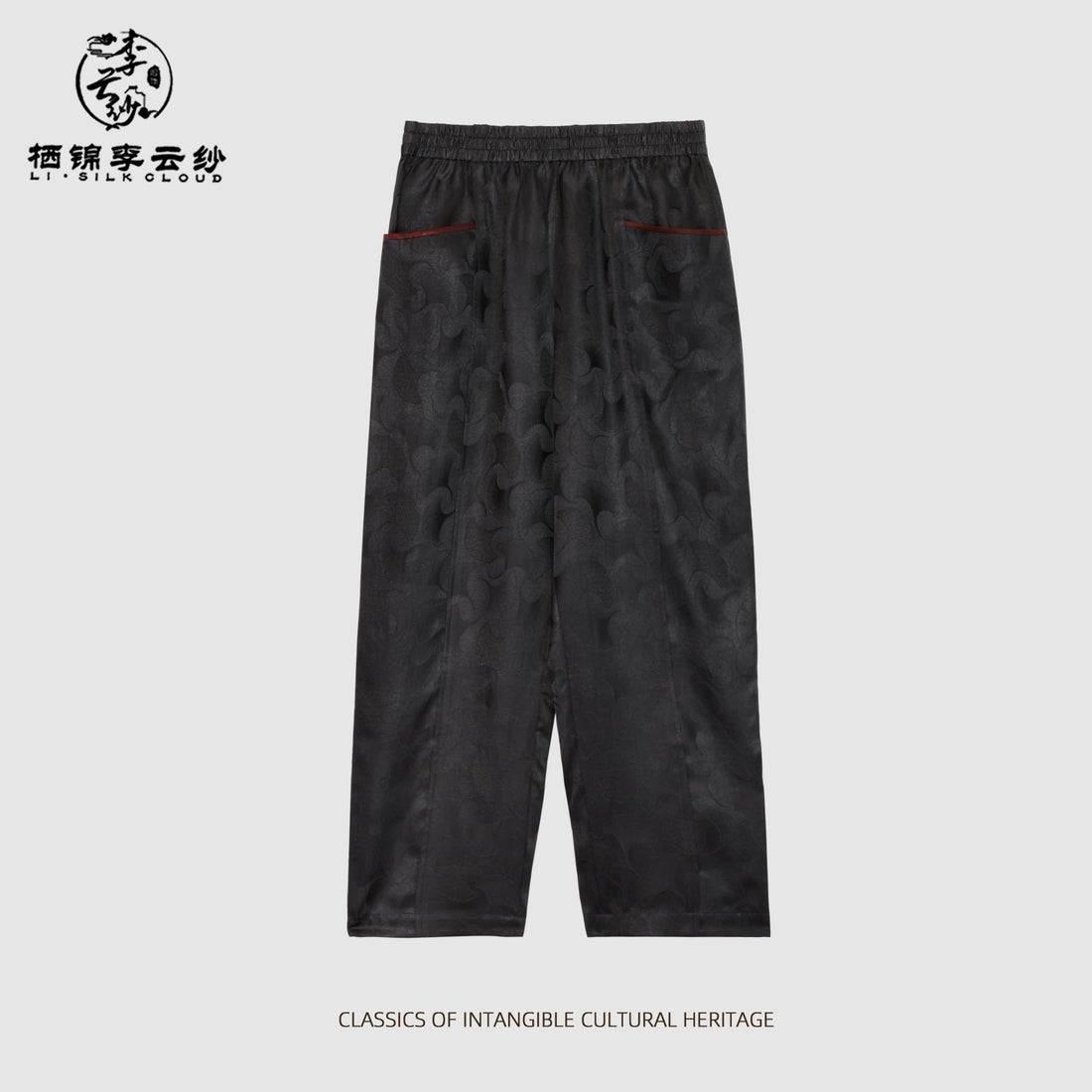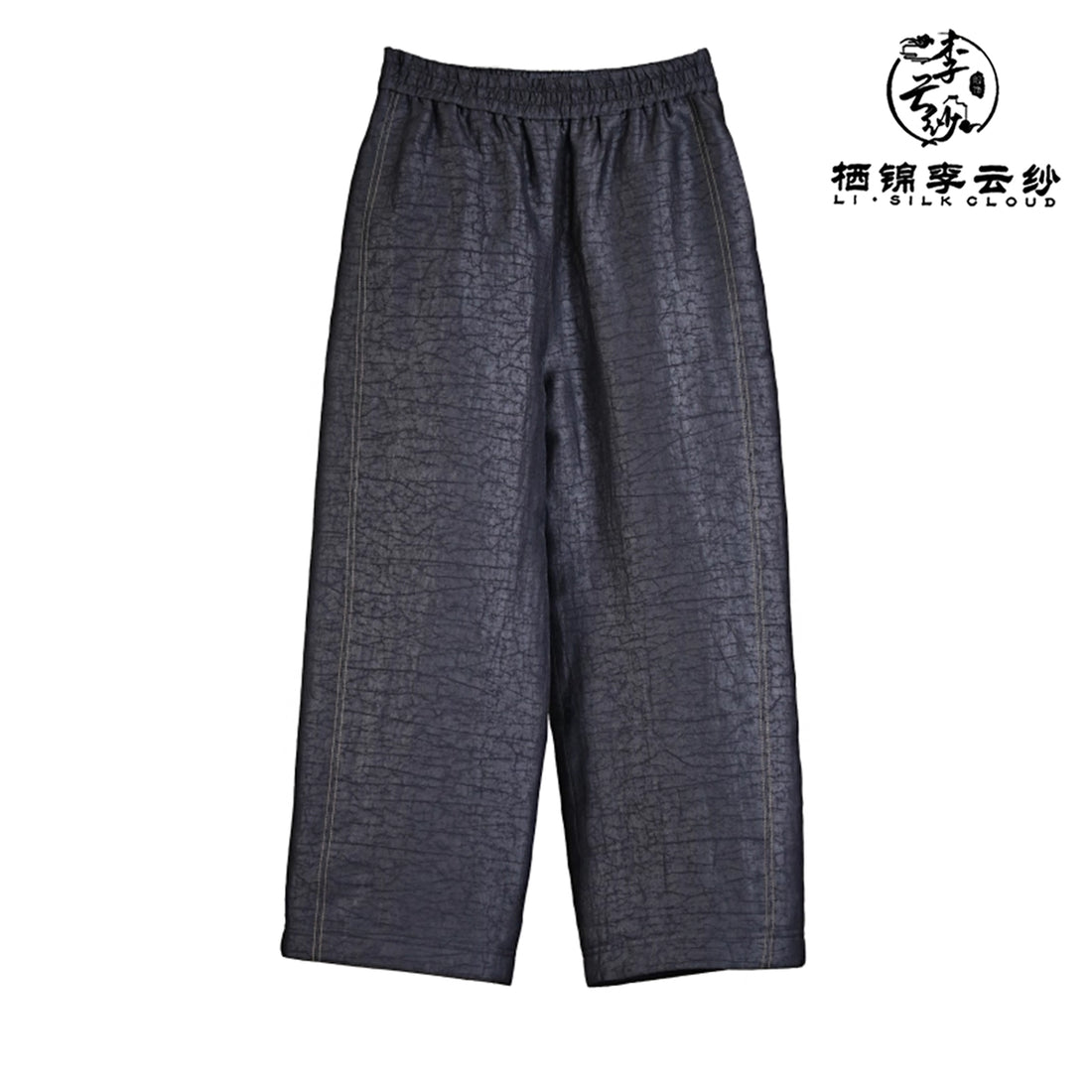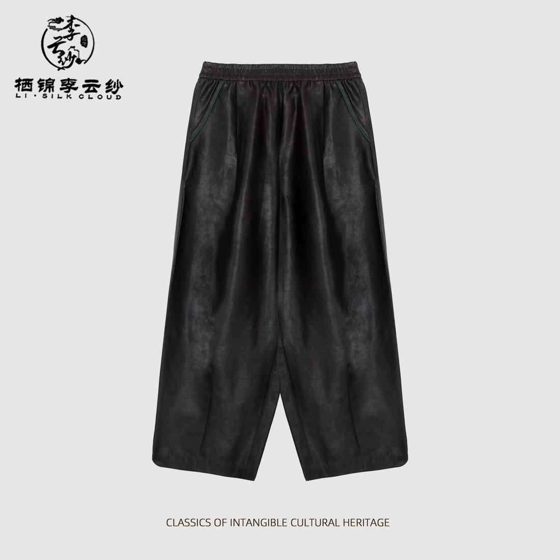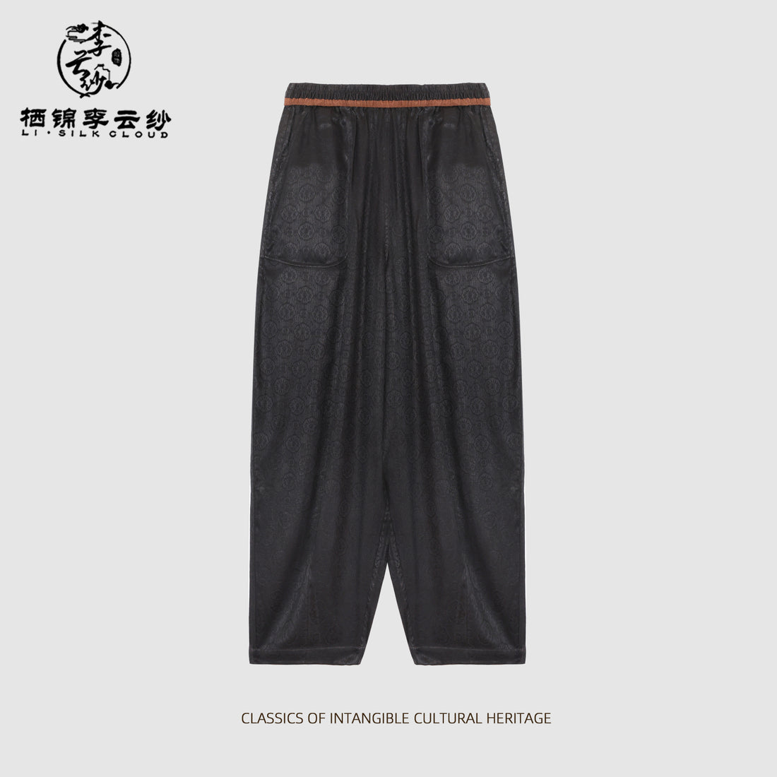 Pants - Skin-Friendly Silk Fabric, Elegant Oriental Long Trousers Guangdong Black Pearl Gambiered Guangdong Gauze xiangyunsha