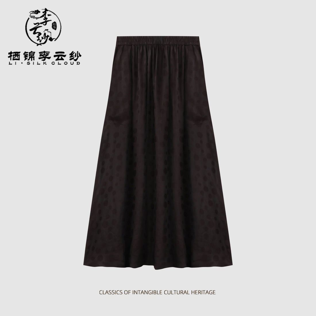Skirt - Mulberry Silk, Retro Prints, Traditional Hanfu-Inspired Half Skirt Guangdong Black Pearl Gambiered Guangdong Gauze xiangyunsha