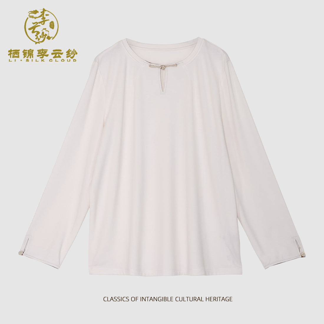 long Sleeve Top - 100% Mulberry Silk, Comfortable Breathable Guangdong Black Pearl Gambiered Guangdong Gauze xiangyunsha