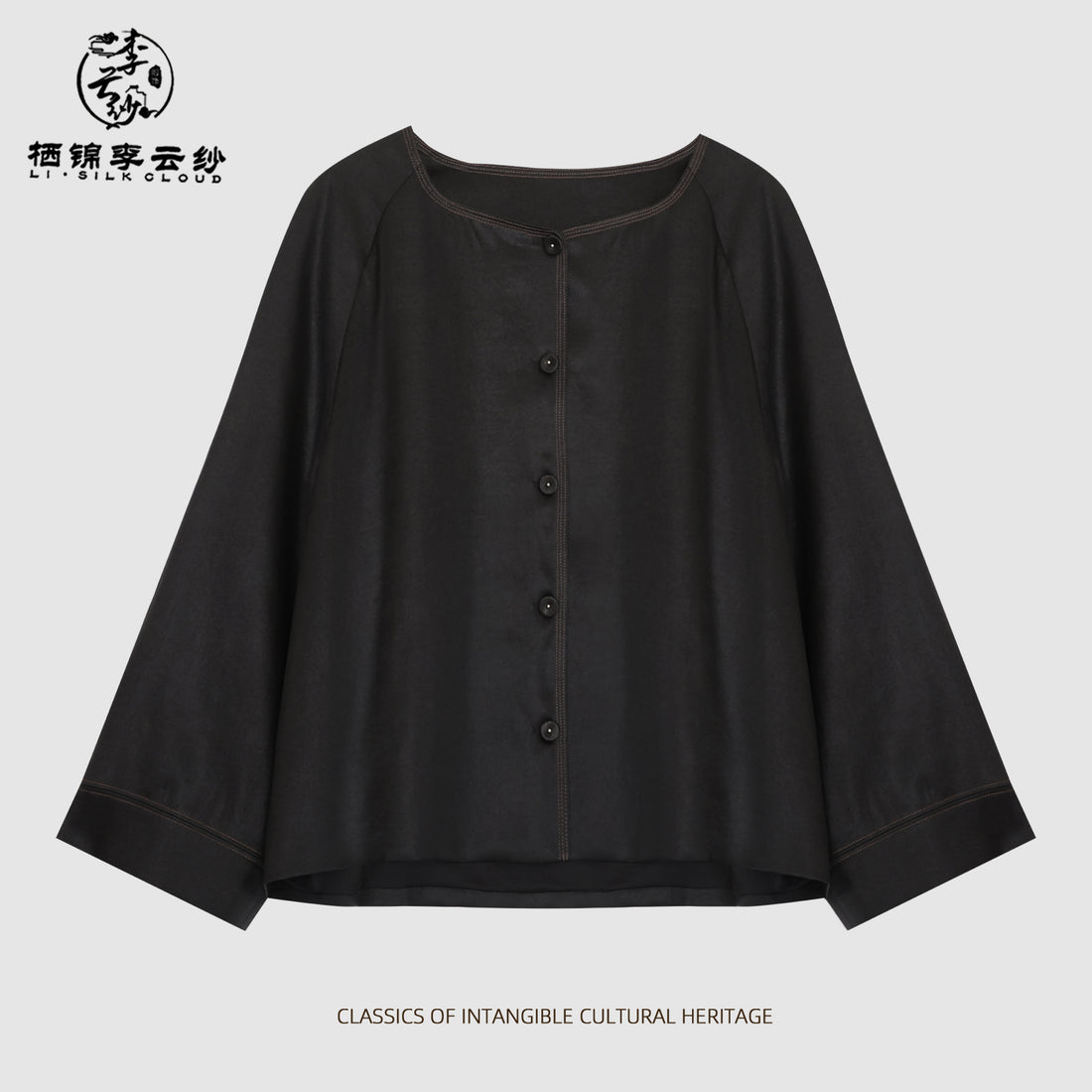 Long Sleeve Top,Classic Knot Buttons Oriental Guangdong Black Pearl Gambiered Guangdong Gauze xiangyunsha