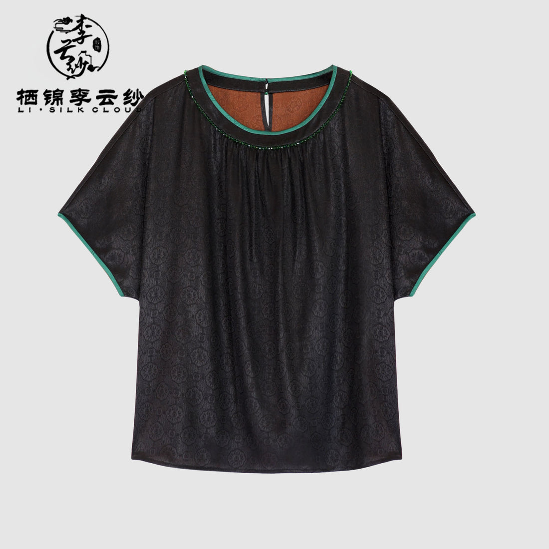 Short Sleeve Blouse - Mulberry Silk Fabric, Chinese Style Casual Guangdong Black Pearl Gambiered Guangdong Gauze xiangyunsha