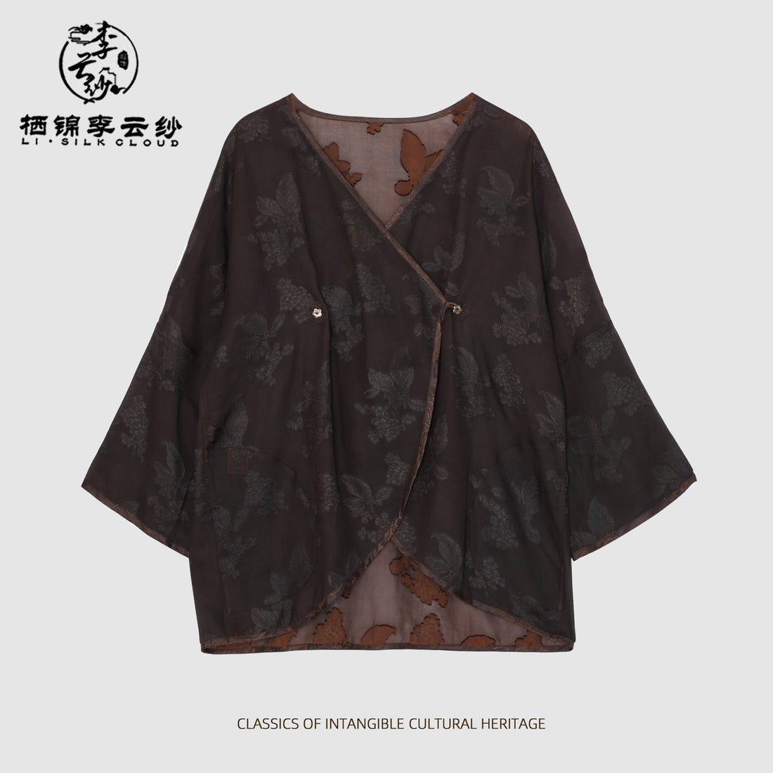 Sleeve Outerwear - Chinese Classic Style,Comfortable Silk Coat Guangdong Black Pearl Gambiered Guangdong Gauze xiangyunsha