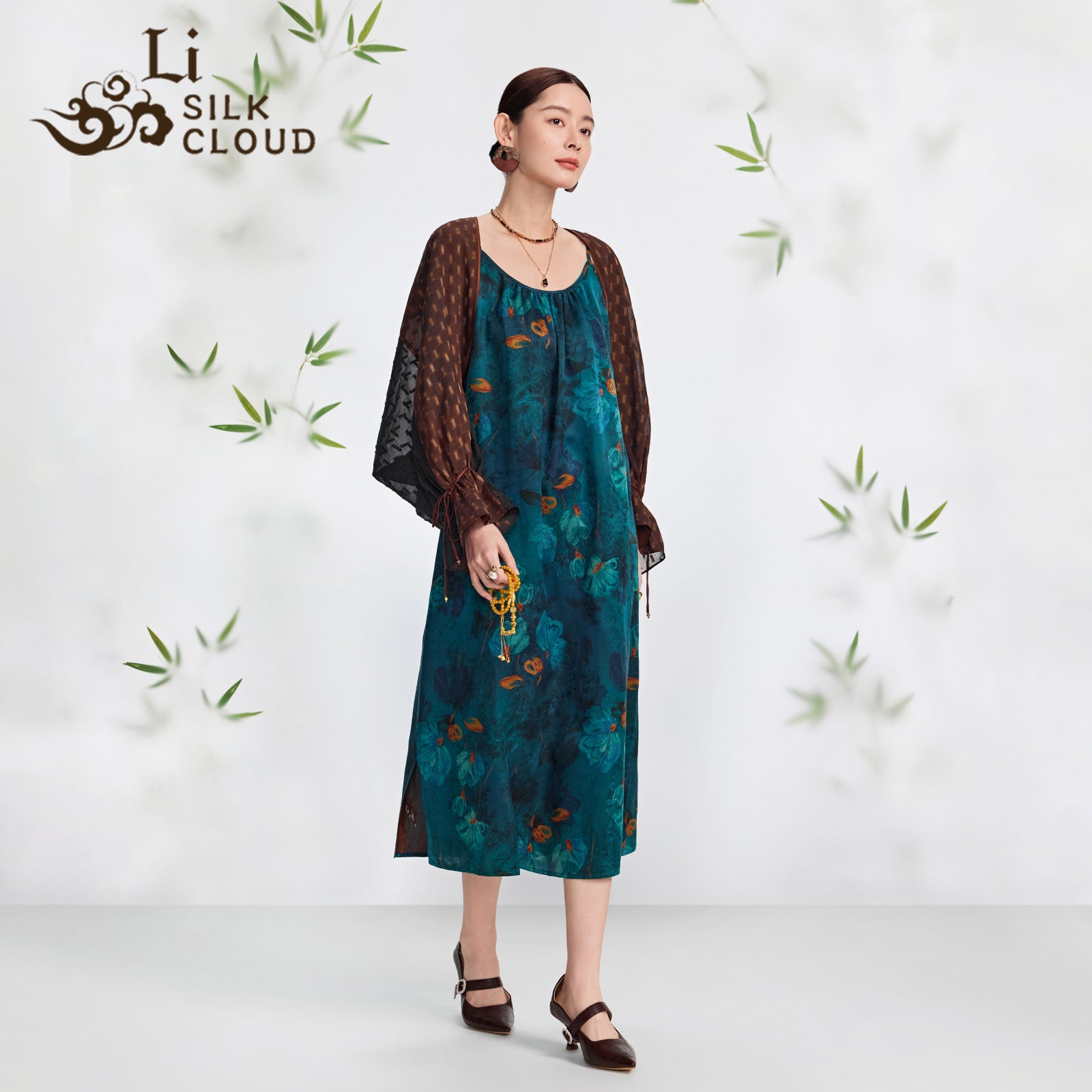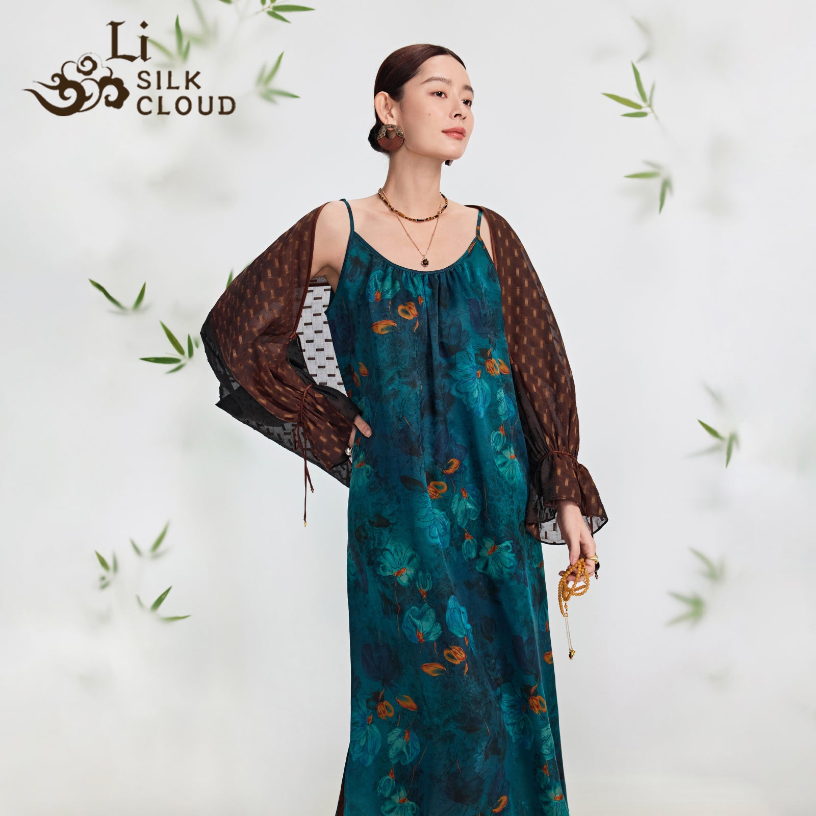 Dress - Skin-Friendly Glossy Fabric, Lustrous Silk Texture, Elegant Oriental Gown Guangdong Black Pearl Gambiered Guangdong Gauze