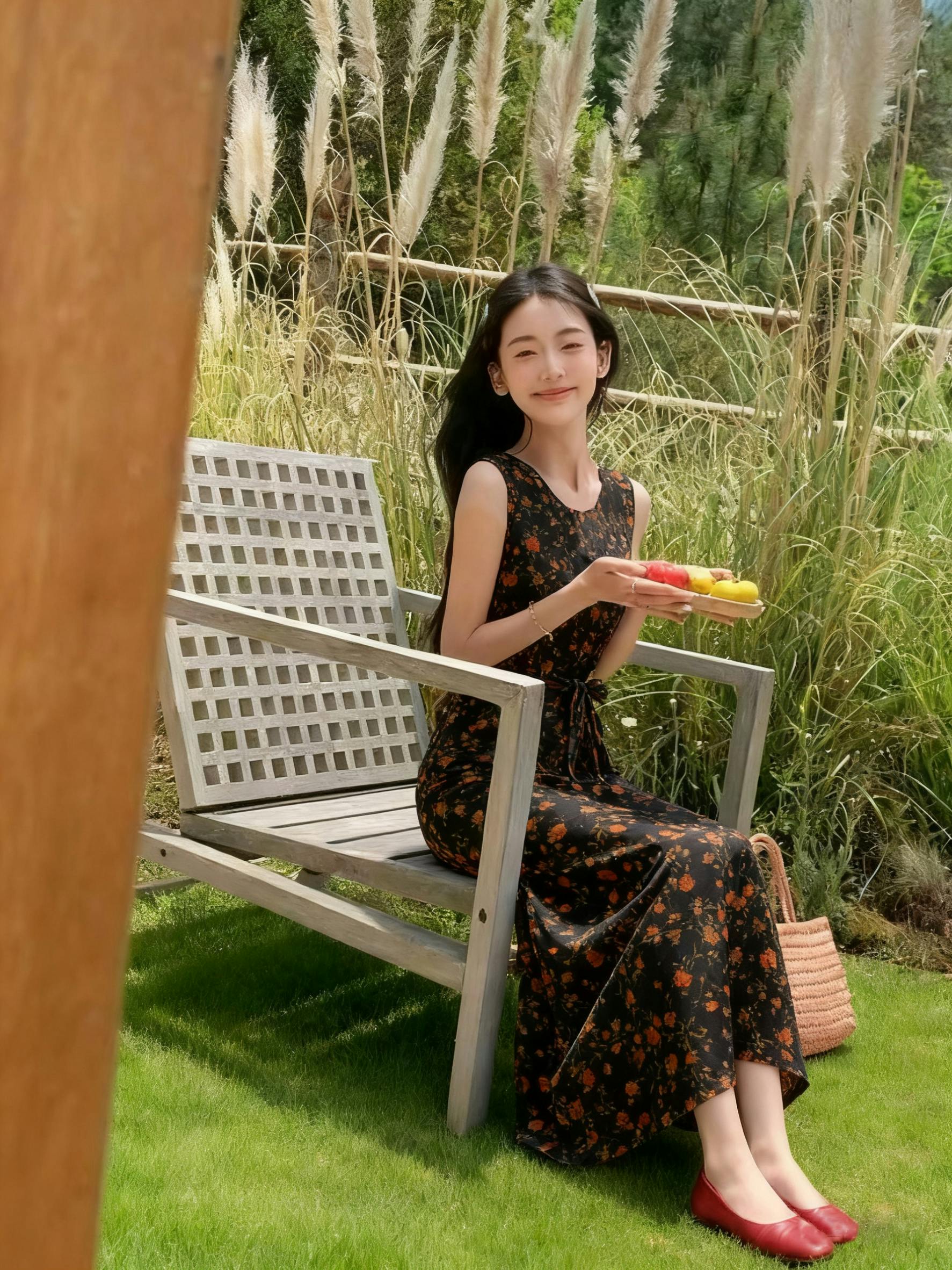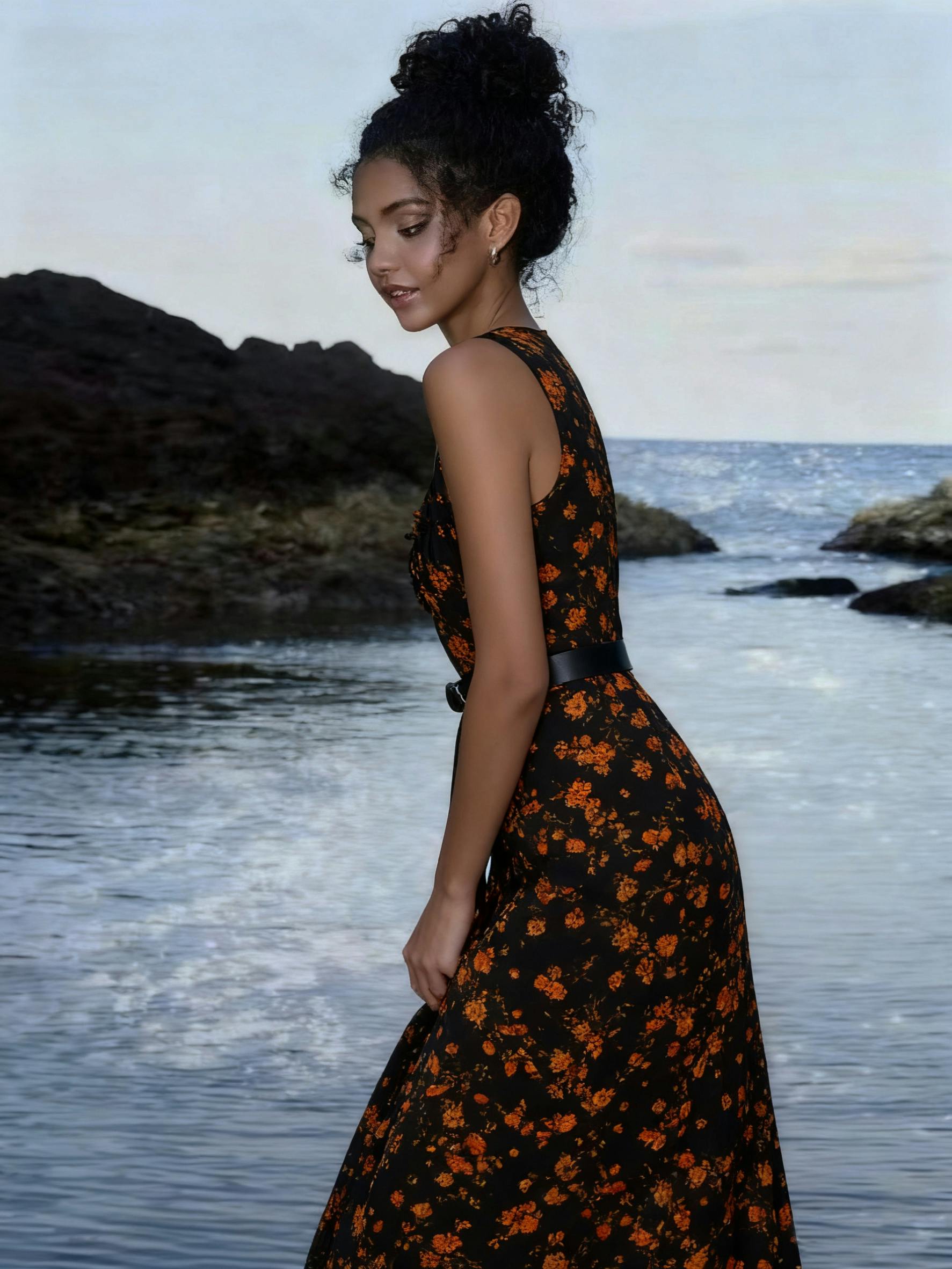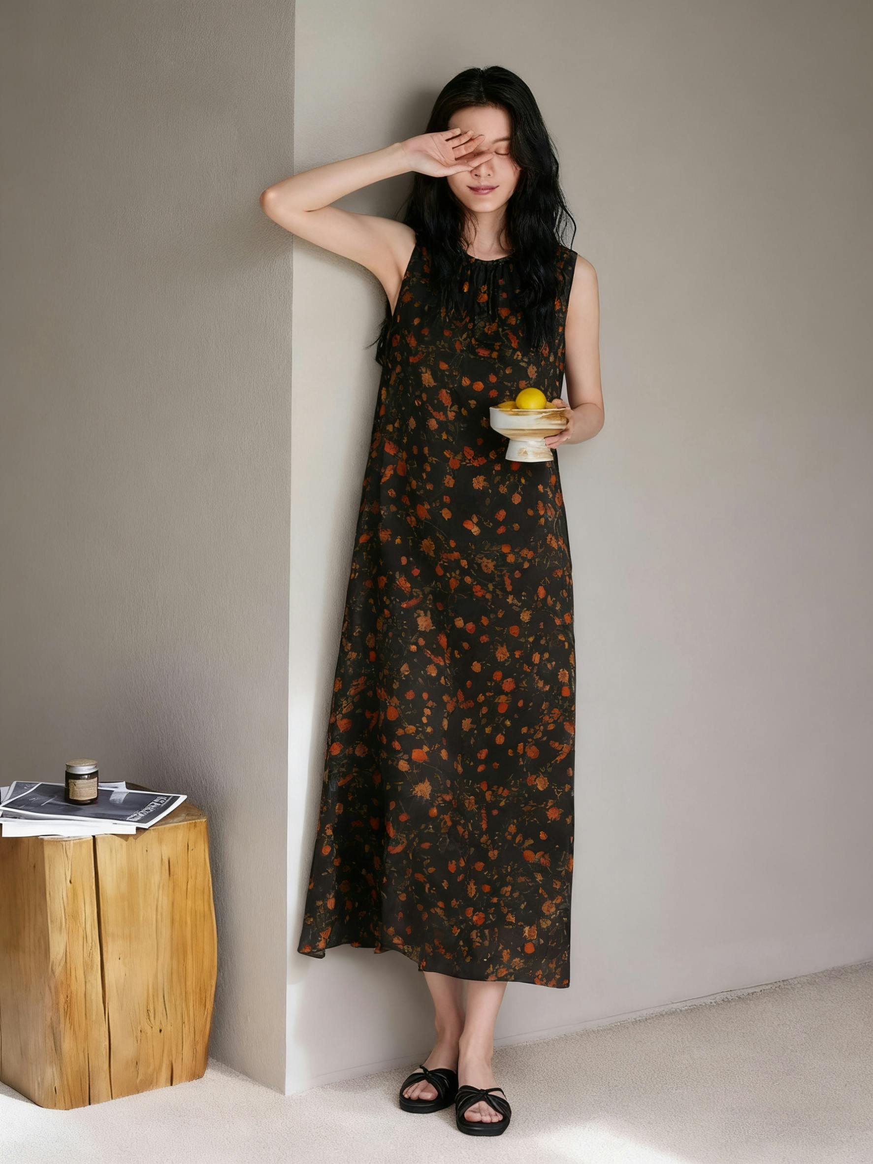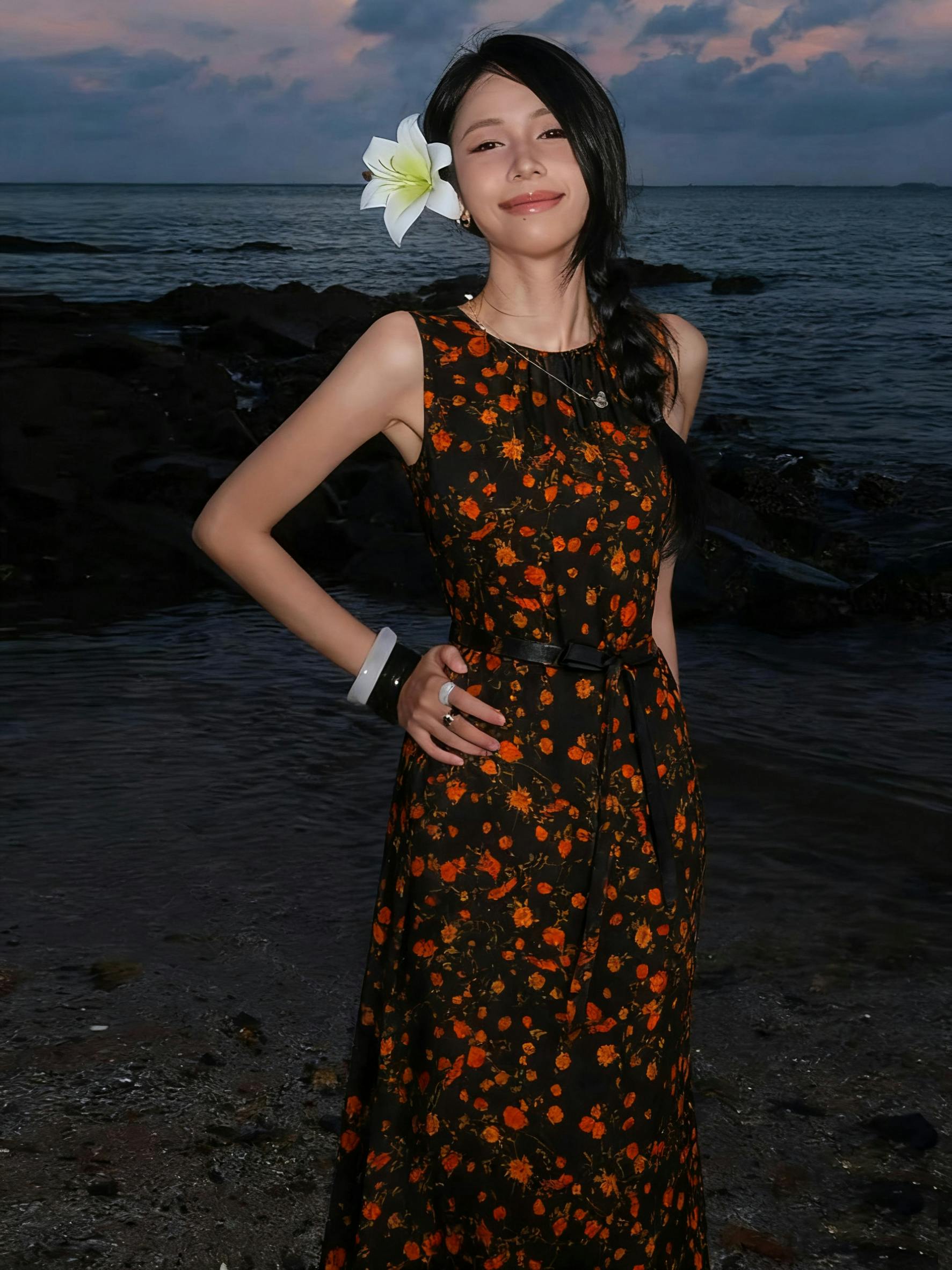 Dress,Skin-Friendly Silk Fabric, Ditsy Floral Patterns, Elegant Guangdong Black Pearl Gambiered Guangdong Gauze xiangyunsha
