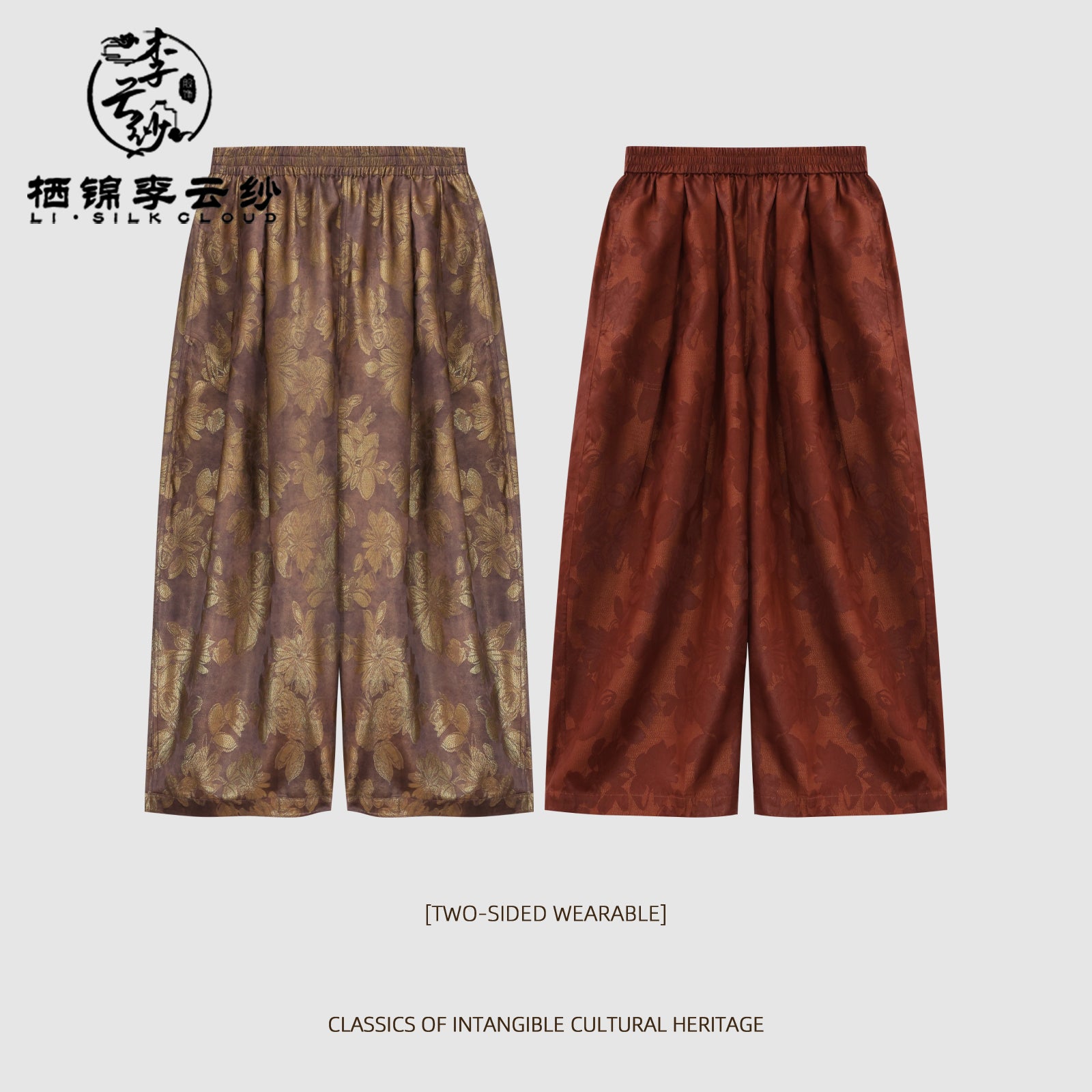Guangdong Black Pearl Gambiered Guangdong Gauze xiangyunsha Pants, Natural Tuberose Dye, High-Waisted for Longer Legs, Free Switch Between Work & Leisure Scenes