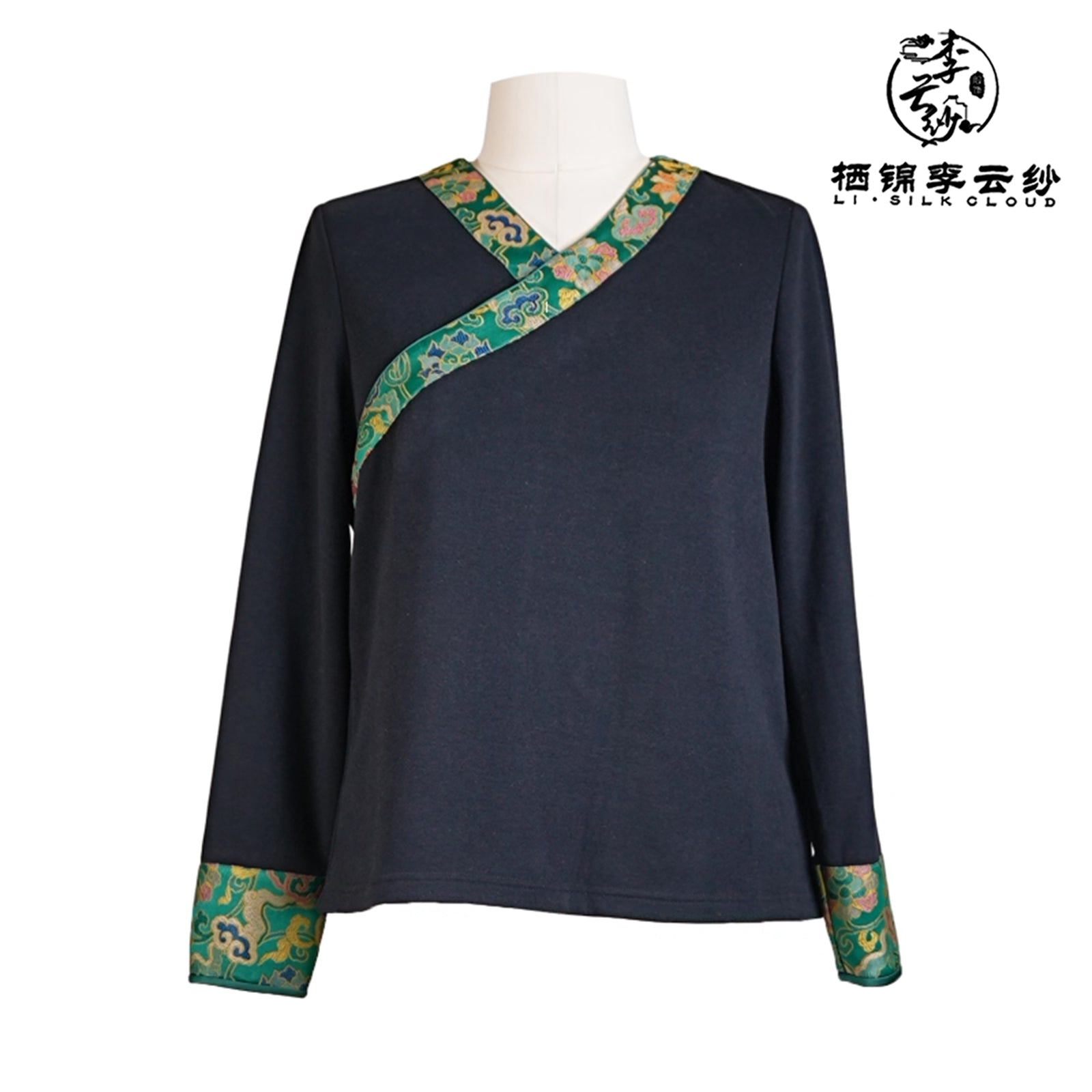 LI SILK CLOUD Top V-neck Draping Slim-fit Mulberry Silk Long Sleeve Office Blouse