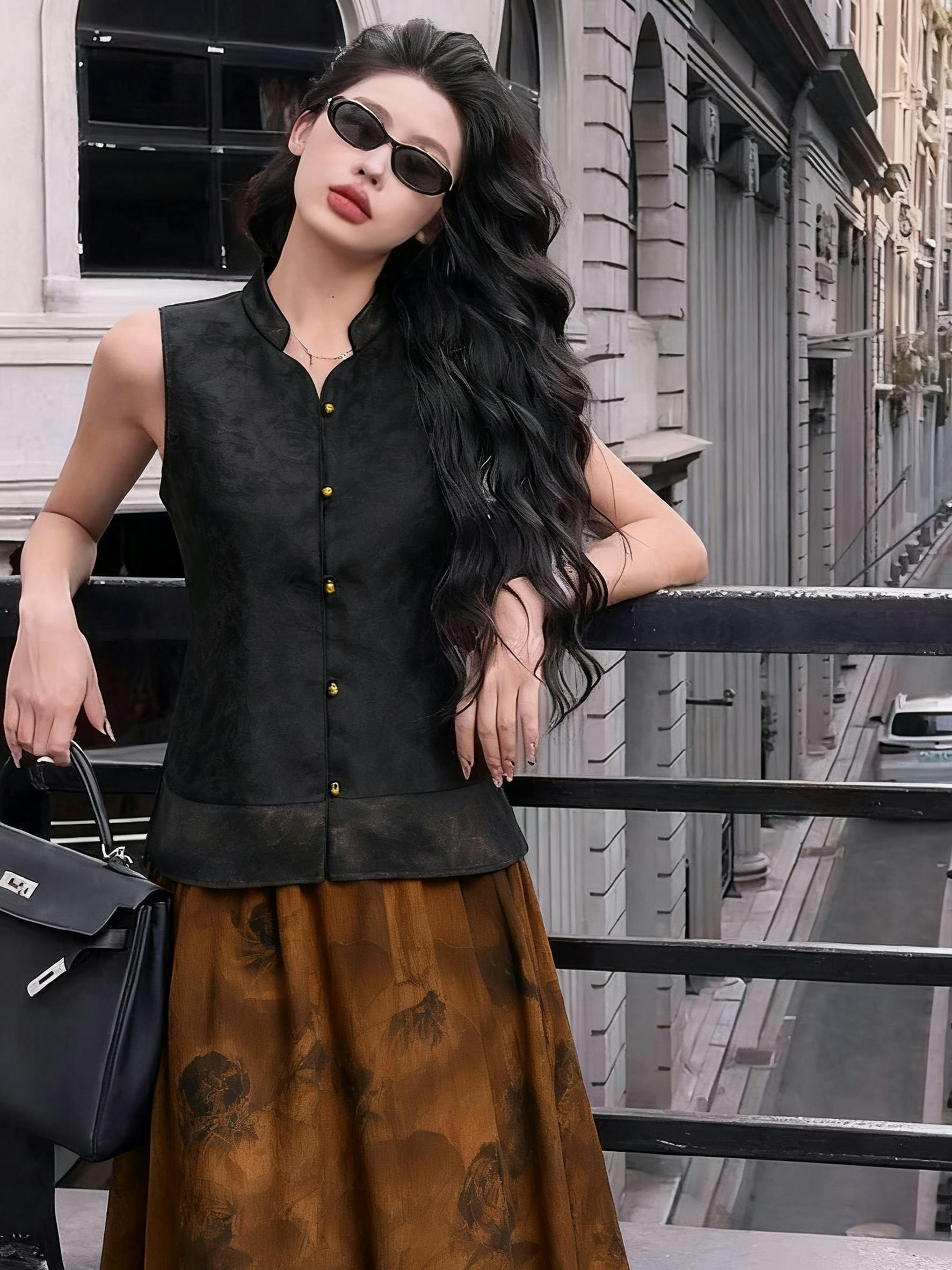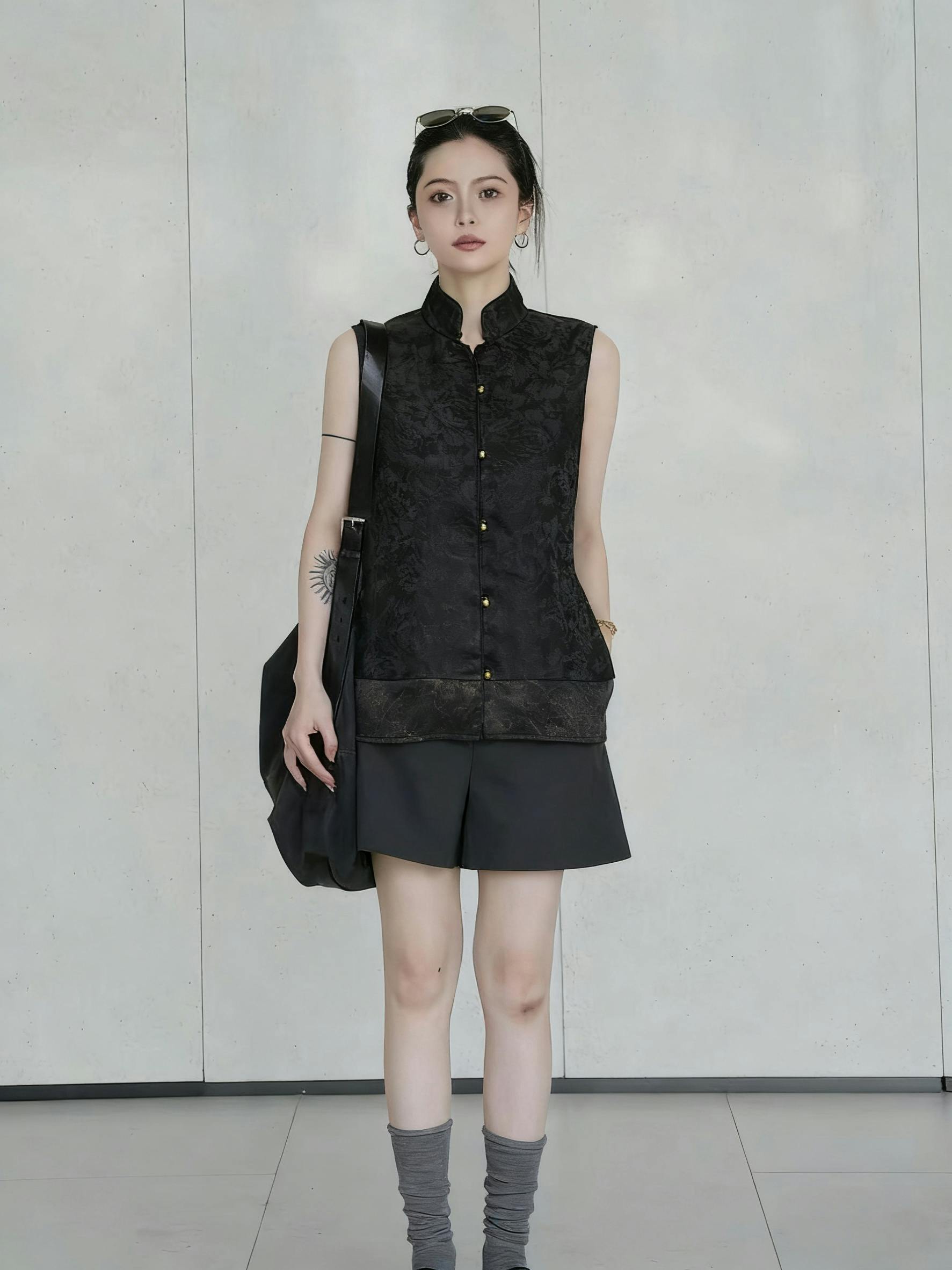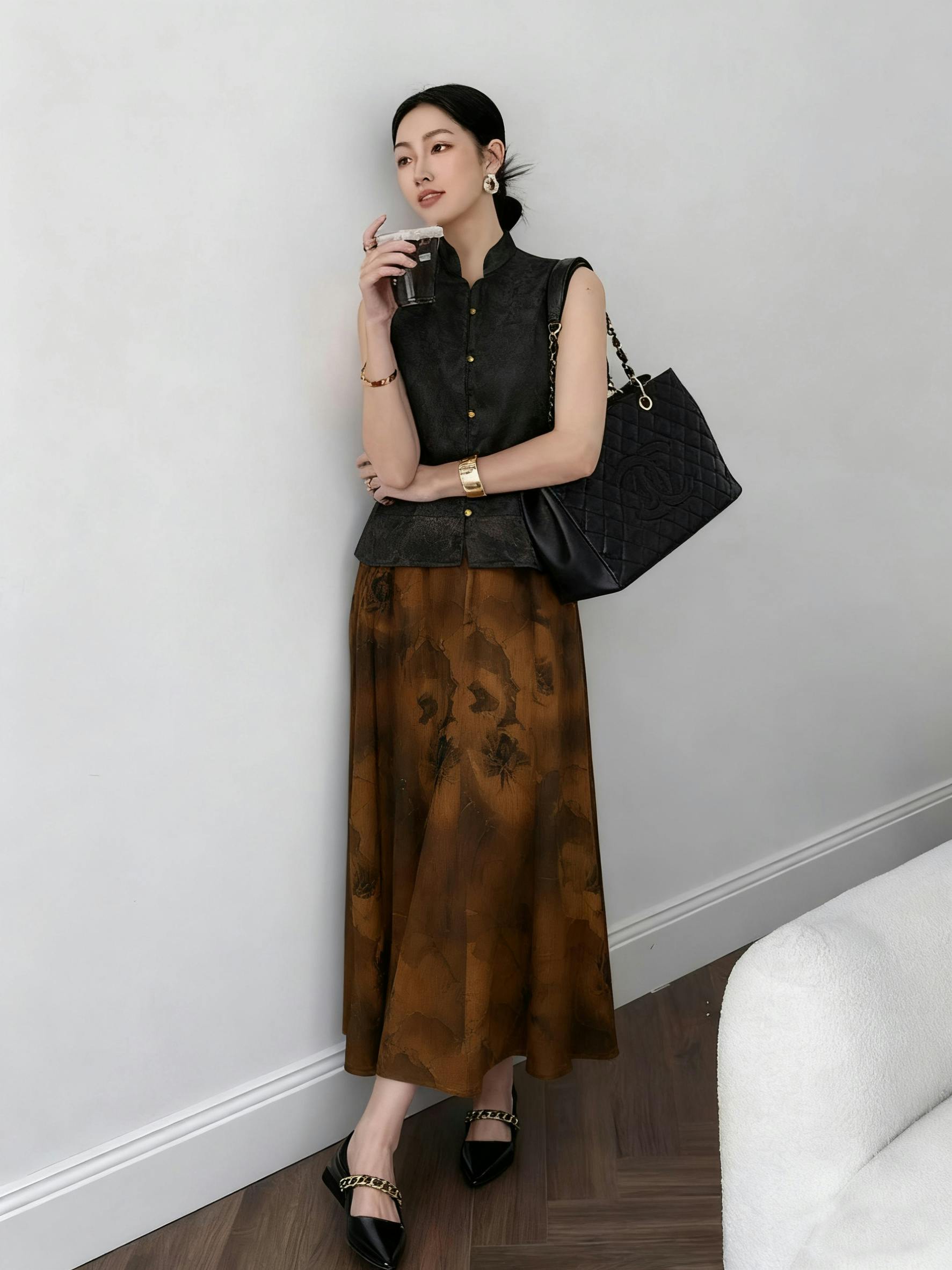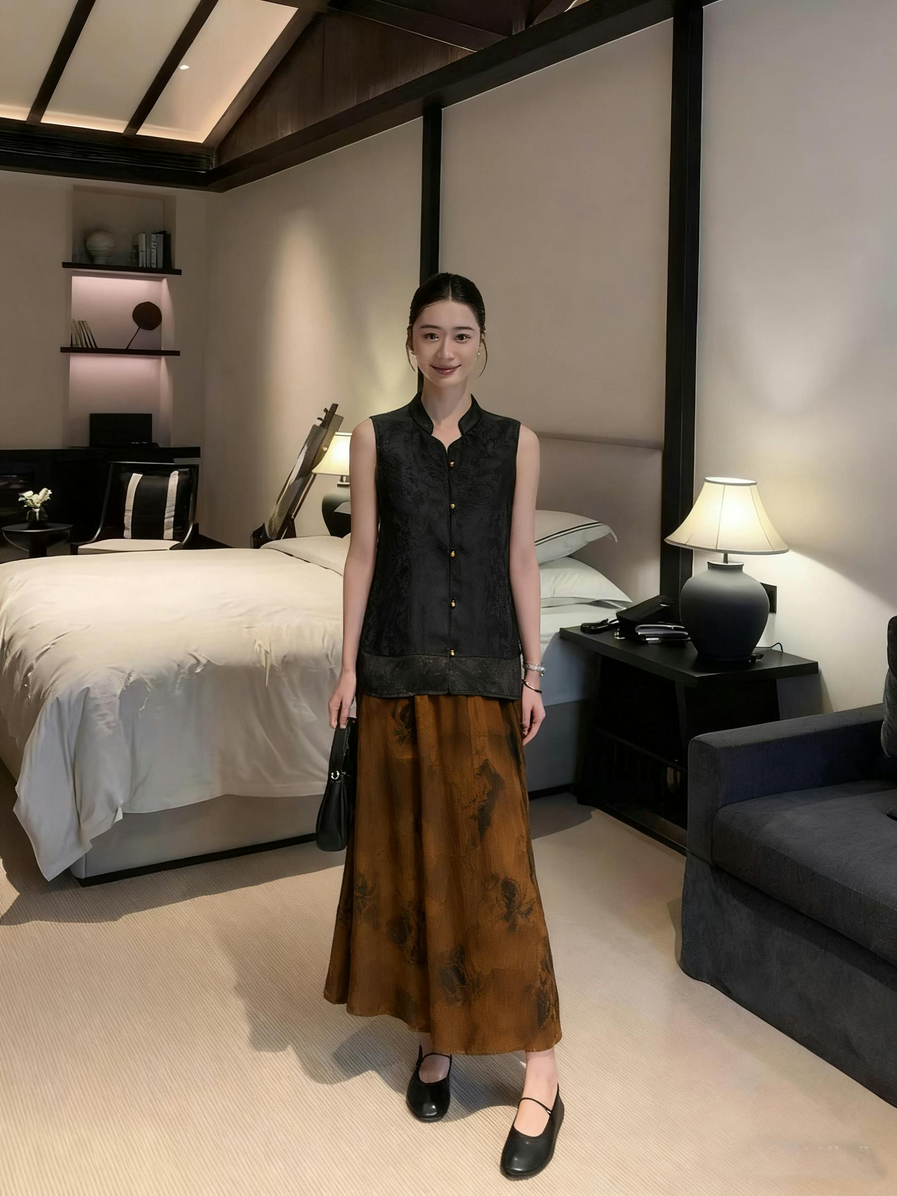 Retro Xiangyunsha Blouse · Oriental Nostalgic Aesthetics Guangdong Black Pearl Gambiered Guangdong Gauze xiangyunsha
