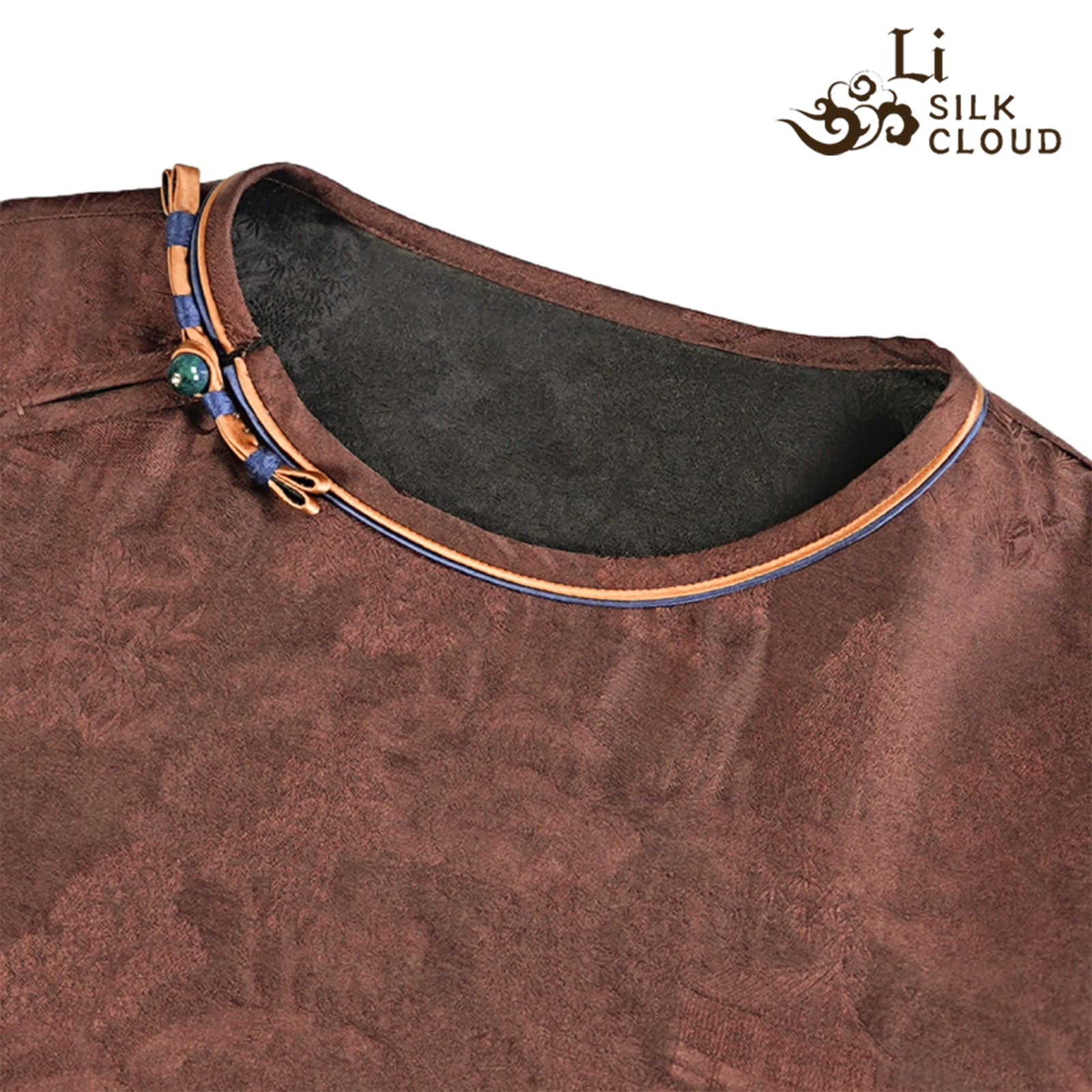 Top,100% Mulberry Silk,Chinese Style Long Sleeve,Elegant Silk Guangdong Black Pearl Gambiered Guangdong Gauze xiangyunsha