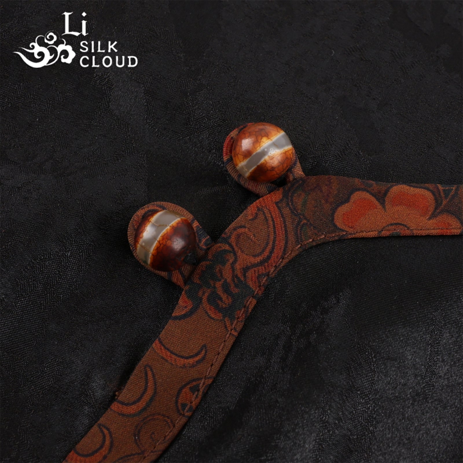 Xiangyunsha Retro Top . handmade buttonhole Soft and breathable Guangdong Black Pearl Gambiered GuangdongGauze xiangyunsha